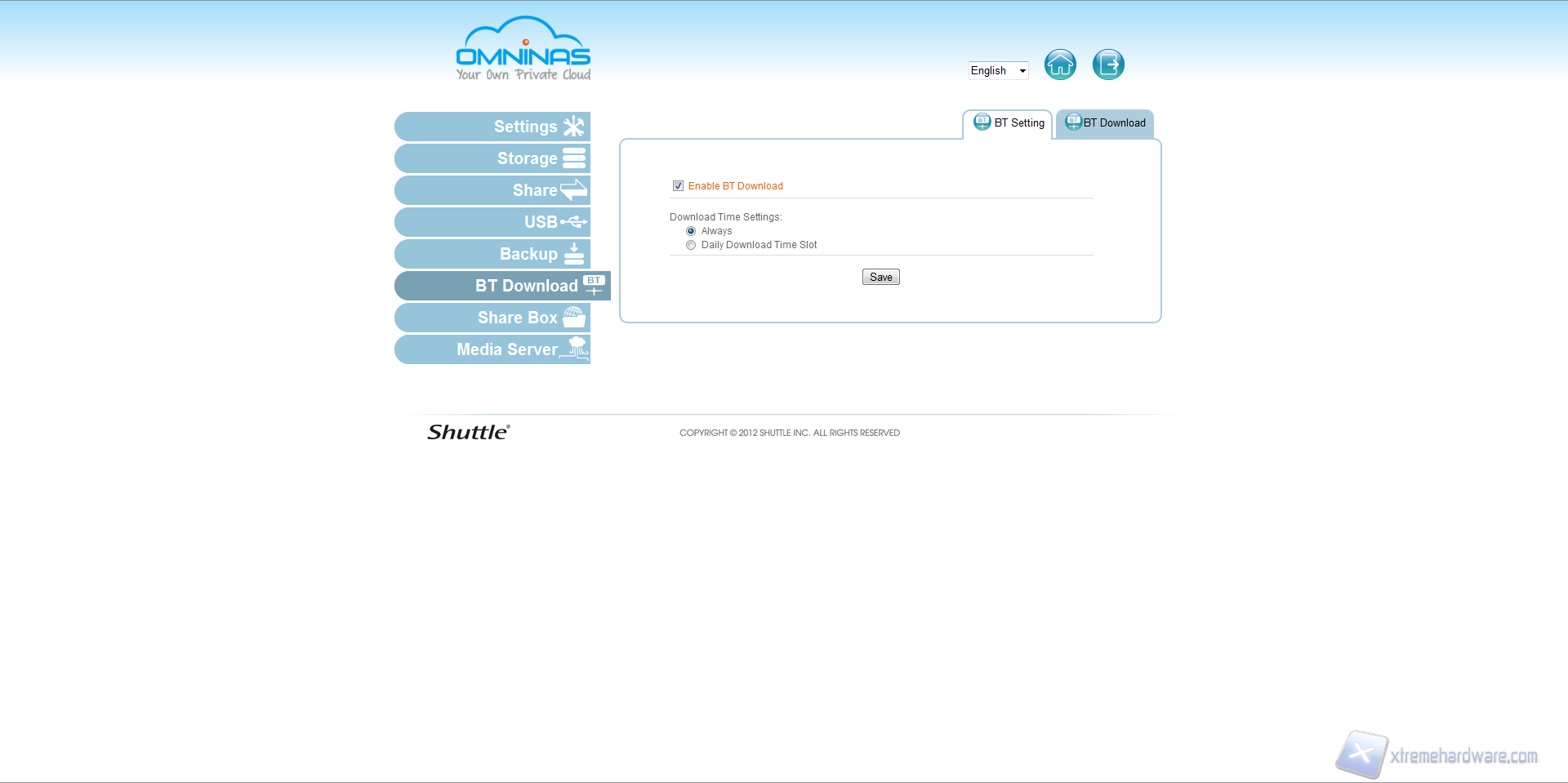 Shuttle OMNINAS KD20: l'eleganza del NAS, per tutti - Menù: BT Download, Shared Box & Media Server